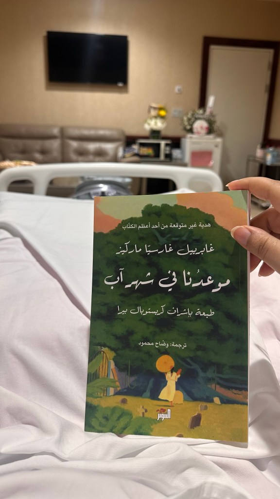 بدأت دانشمند قبل العملية بيوم وحاولت إكمالها بعد ما أفقت من العملية، لكن لم أستطع! أنقذتني أمي حين أخذتها لتقرأ فيها وتكون مرافق لها أثناء مرافقتها لي، كانت أكبر من قدرتي على التركيز وربما لأنها حول موضوع قرأته سابقا، قررت الانتقال لماركيز وقراءة موعدنا في شهر آب، لقيت نفسي أسترسل بالقراءة، كانت لطيفة جدا ولها أثر عاطفي